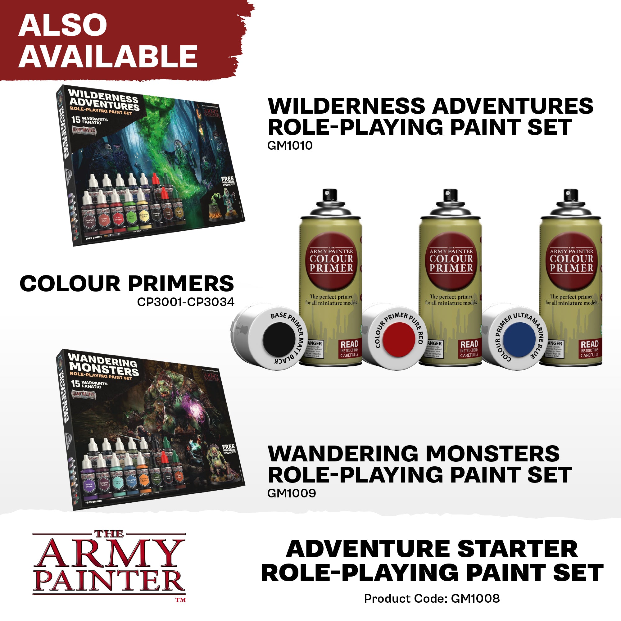 Bring your adventures to life! This epic paint set contains not only a full party of 5 fantastic, highly detailed miniatures it also includes a Starter Brush and 15 of the most essential Warpaints Fanatic colours you need for painting your party of heroes and heroines fighting the foul monsters, dragons, and evil creatures lurking in dark dungeons or above ground.