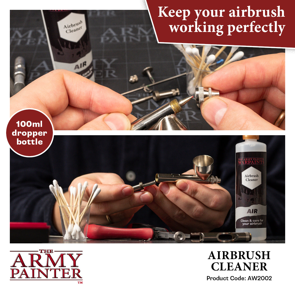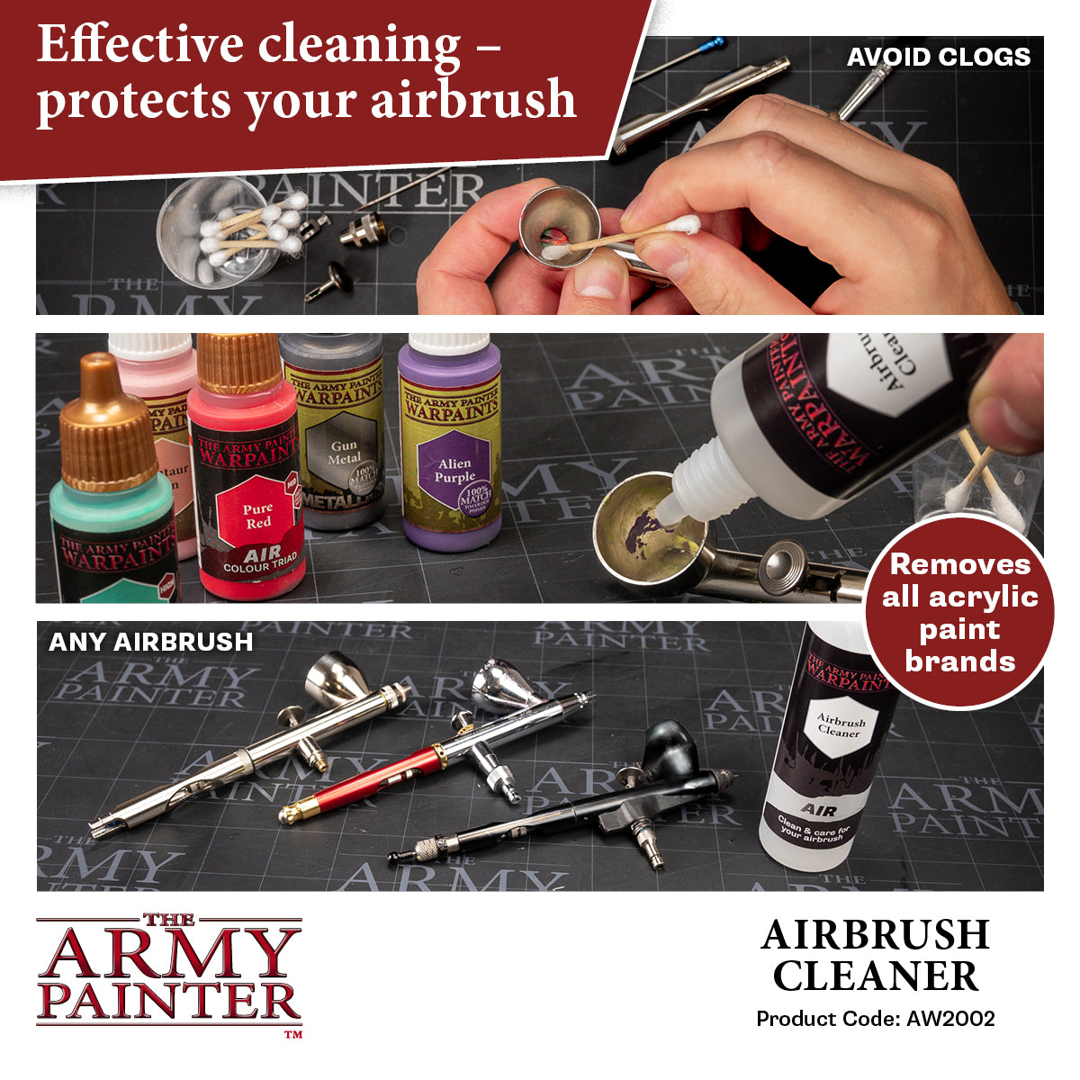 The Army Painter Airbrush Cleaner is a non-toxic, water-based cleaning product specially formulated to remove any acrylic paint residue from hard-to-reach areas of your airbrush. The Airbrush Cleaner ensures optimal long term performance of your airbrush.