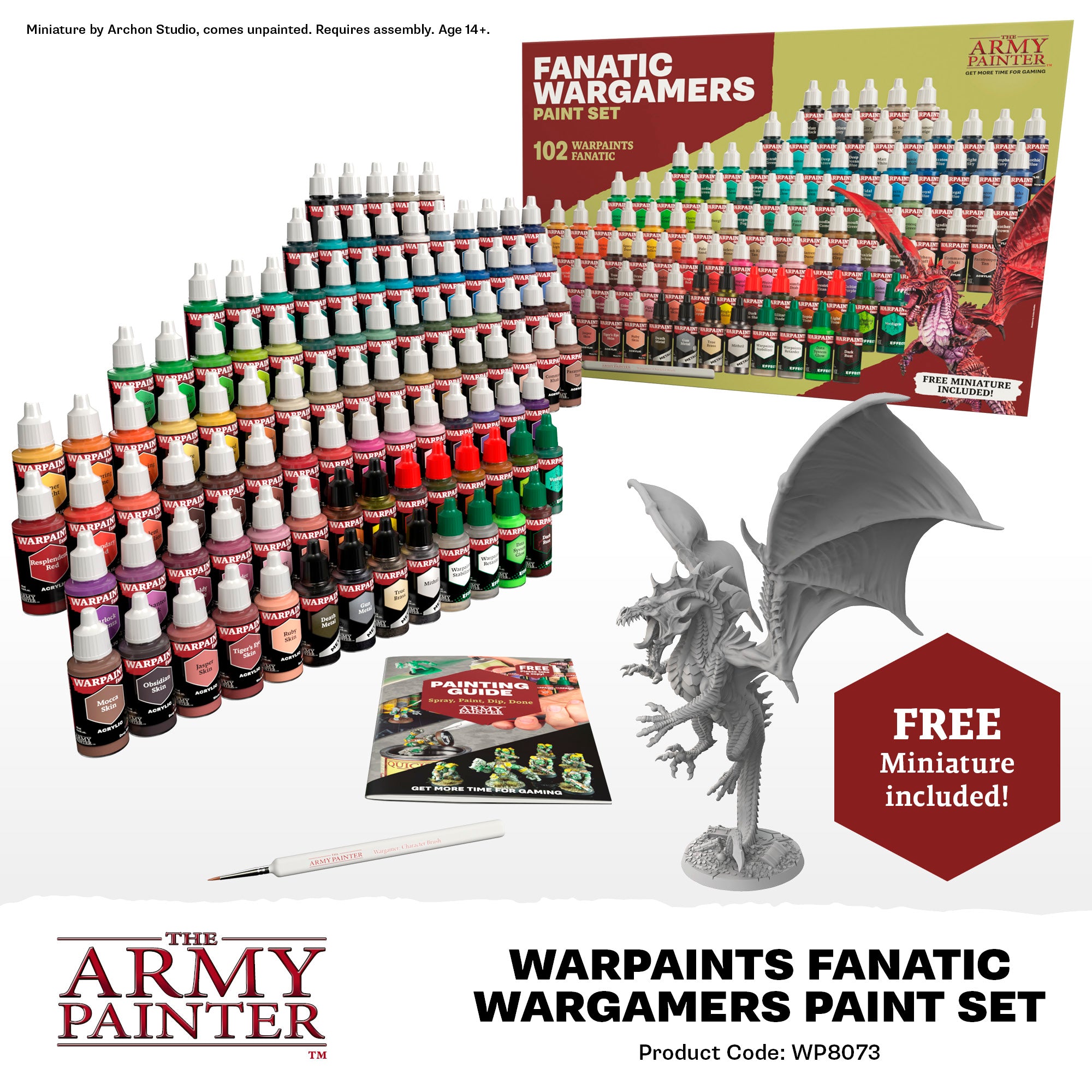 Contents: 102x 18 ml Warpaints Fanatic, 1 FREE Brush Painting Guide, 1 FREE Miniature by Archon Studio.