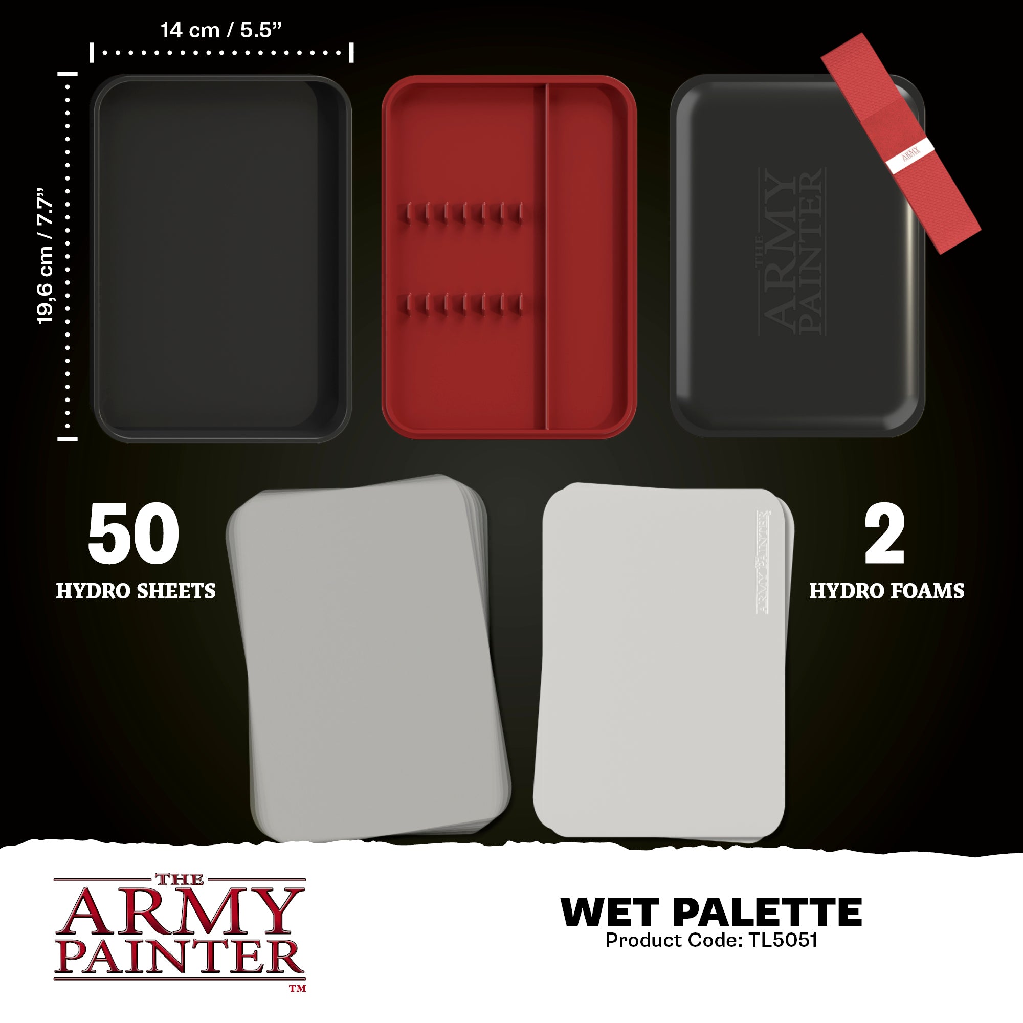 The best Wet Palette there is—superior quality and custom-designed to keep your paints preserved perfectly smooth and creamy! The Wet Palette comes with 2 sheets of hydro foam and 50 hydro sheets. Special inner layer design can hold up to 6 Wargamer brushes and 10 Hobby brushes from The Army Painter range.